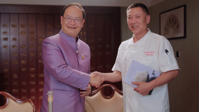 泰国大使馆提供的瓷盘成为点睛之笔:“瓷器起源于中国,在泰国演化出自己的独特风格。”这与孔府锡制餐具的“器以载道”形成呼应。当双方以梦之蓝手工班举杯,韩灿才的感慨让我们感叹中泰两国之间的友谊源远流长:“从汉代‘汉之译使’到如今的美食对话,中泰友谊早就在烟火气里扎根。”