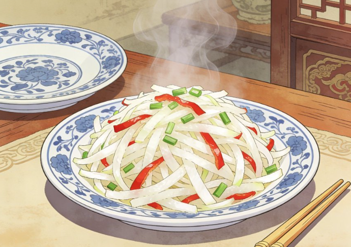 那时候萝卜的通常做法就是炒萝卜条。把萝卜切成粗条备用,铁锅里放上一点点油,油热后倒入萝卜条,翻炒几下,加入粗盐即可出锅。炒萝卜条很难吃,萝卜被炒得软塌塌的,口感很差,再加上那时炒菜根本舍不得放油,这道菜给我的感觉就是滋味寡淡。母亲还说冬吃萝卜“赛人参”,那人参该有多难吃啊。