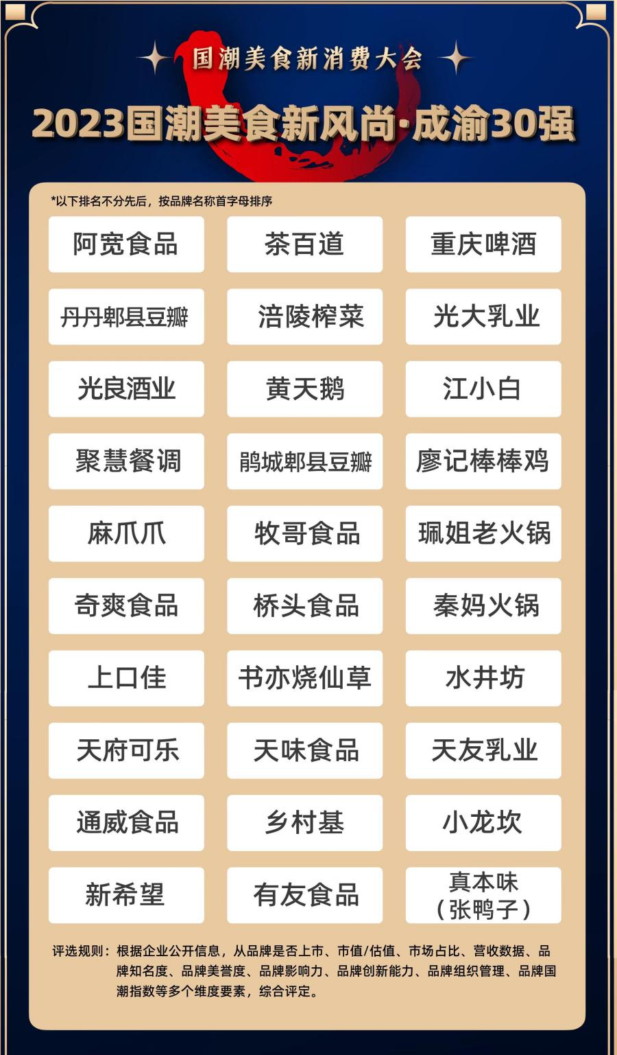 《2023国潮美食新风尚·成渝30强》则致力于深度挖掘以成渝美食为代表的区域食品特色和地方风味文化,发现中国新味道,塑造美食新潮流。