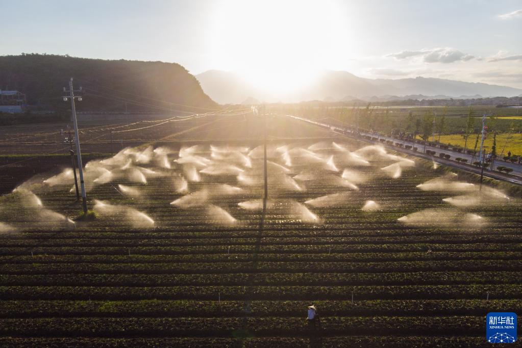 当日,天气晴好,在湖南省永州市道县清塘镇濂溪大洞蔬菜基地,农户抢抓农时在田间劳作。