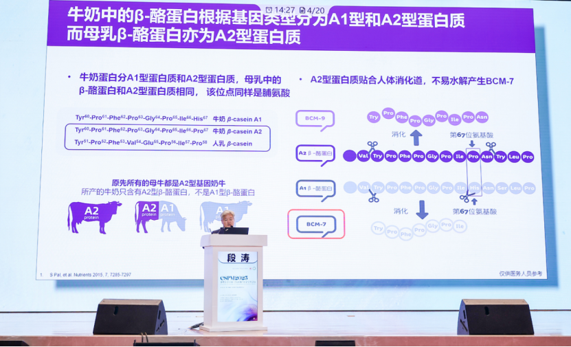随着消费者对营养健康需求的日益精细化,A2型蛋白品类正站在新的市场与科研风口。中国营养学会副理事长、上海交通大学医学院蔡威教授表示:奶类是婴幼儿至关重要的营养来源,牛乳中的β-酪蛋白分为A1和A2型,这一科学认知至关重要。大量证据表明,部分人群在饮用牛奶或奶类后出现的胃肠道不适,可能与A1型蛋白的代谢产物有关。而母乳中的β-酪蛋白,其天然结构正是A2型。这一根本差异,为我们理解牛奶蛋白的亲和性与营养策略,提供了全新的科学视角。
