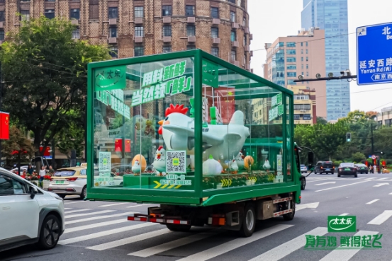 围绕这一核心,太太乐主要做了3件事:其一联合美团、腾讯广告启动“美腾计划”,在点餐、刷内容时自然传递“新鲜鲜味”信息;其二邀请姜妍作为品质领鲜大使,以日常饮食视角传递“新鲜用料”价值;其三采用“走出去+引进来”互动模式,如“真飞‘鸡’全国领鲜巡航”Mini巡游车空降南京、杭州、武汉、郑州等八大重点城市,以更广城市覆盖和高频街头偶遇成为“移动的鲜味窗口”。此外,太太乐还与叮咚买菜合作组建“领鲜骑士”车队及爆改保“鲜”箱,让消费者在逛街、收快递时直观看到“鲜”的呈现,并实现“扫码下单、新鲜到家”的即时消费闭环。