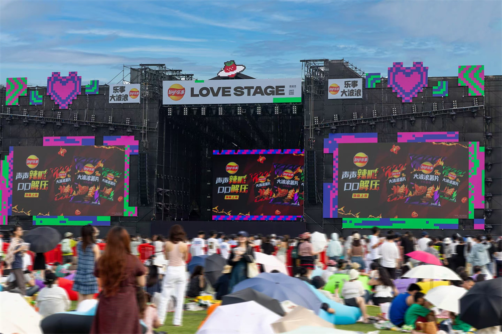 今年,乐事大波浪推出辣条味和火鸡面味,与辛辣味一道构成独特的辣味薯片矩阵,切中了年轻群体寻求刺激与情绪释放的需求,迅速成为解压必备零食。该系列还和草莓音乐节“玩到一起”,让“解压”的心智深入人心。