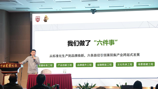12月14日上午,莱阳梨产业协会法人、副会长、烟台飞驰蜗牛农业发展有限公司董事长肖凯应邀走进中国农业大学,围绕“农食企业创新管理实践——品牌建设引领企业创新发展”主题,分享莱阳梨系统化的品牌建设与产业创新经验。活动包括专题讲座、互动问答和产品品鉴环节,深受师生好评。